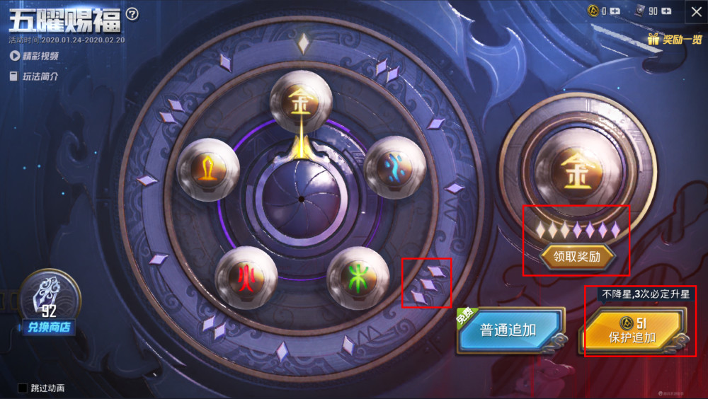 现在,最合算的办法,便是先随机抽取金木水火土,五曜中的恣意一个三星。留意:是三个星级的“星耀”,然后挑选“维护追加”到5星。