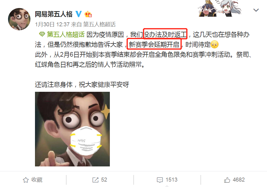 《第五品格》官博苦兮兮地表明,由于众所周知的原因,他们的工作人员无法及时返工,只能宅在家中,新赛季也只能暂时延期,详细时刻待定。