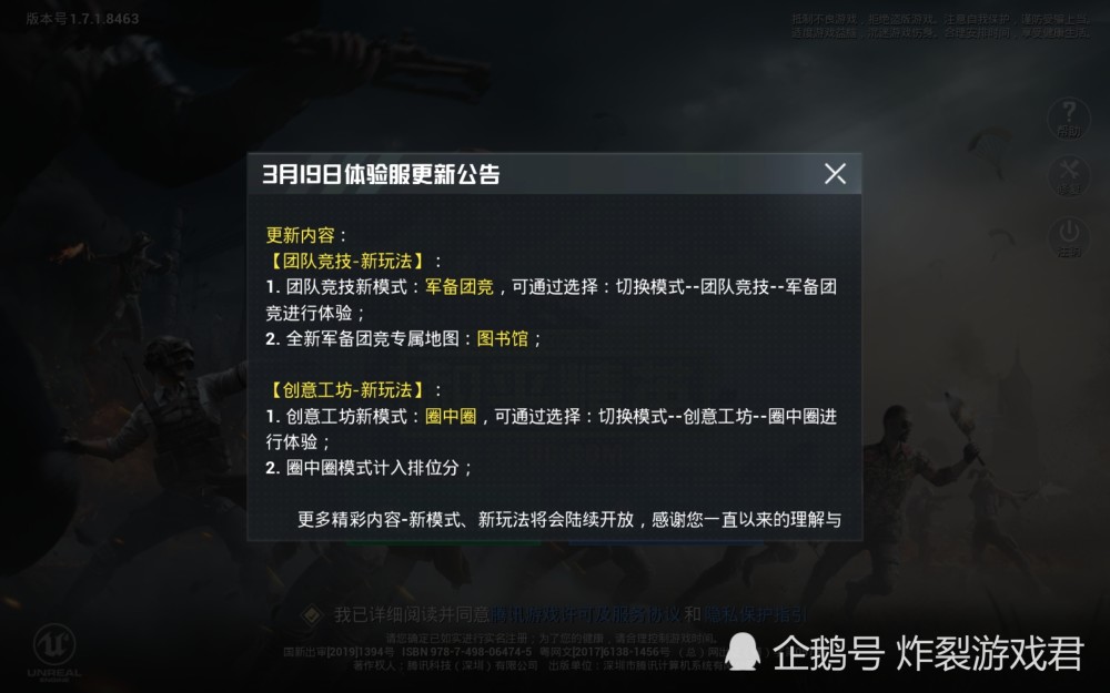 欢迎诸位小伙伴们来到本期天哥开讲的《平和精英》“精英小讲堂”~重视3月新版别动态的老玩家们都知道,现在体会服现已正式敞开了~由于体会服每天都会带来不同的内容,所以现现在又迎来了一次731M的更新~