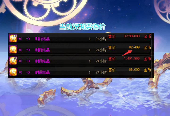 韩服100级出这么久,深渊票也通过调控,稳定在8W金币左右。而国服才出,拍卖行时刻结晶材料,也在8W金币出面。但你会发现,商人在大举的囤货,为提价预备着。在95版别时期,许多玩家积累了旧门票,以及很多的史诗魂灵,差不多能保持一段时刻,不用到拍卖行买时刻结晶!可是,等一周今后,背包深渊票耗费殆尽,那么,拍卖行上提价也是必然趋势!