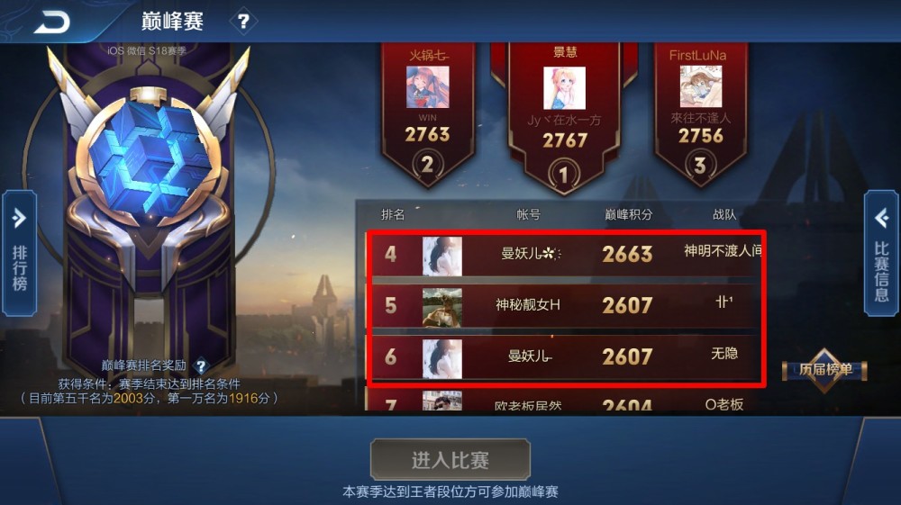 个人自己的观念:在ios微信区,还有十分多像“曼妖”相同的神仙大佬,这些大佬拼的不只仅有过人的硬实力,也有“钞才能”,他们能够在2000多分的以上的分段打出“组织局”,这也是为什么ios微信区的巅峰积分、荣耀战力都如此虚浮的原因之一!